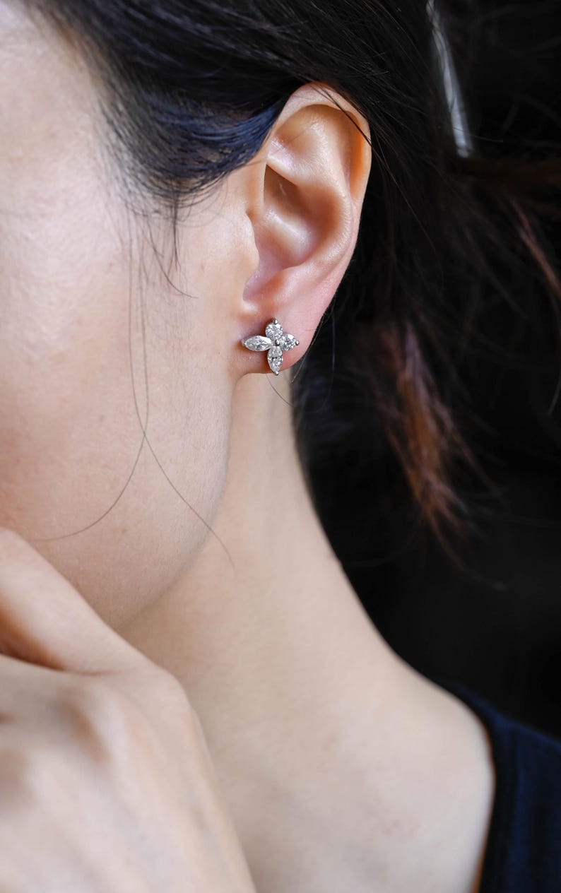 These stunning earrings combine the brilliance of Round & Marquise cut moissanites, creating a timeless and sophisticated look. Crafted in solid gold and designed to sparkle, these earrings are the perfect accessory to elevate any outfit, whether for a special occasion or everyday wear.