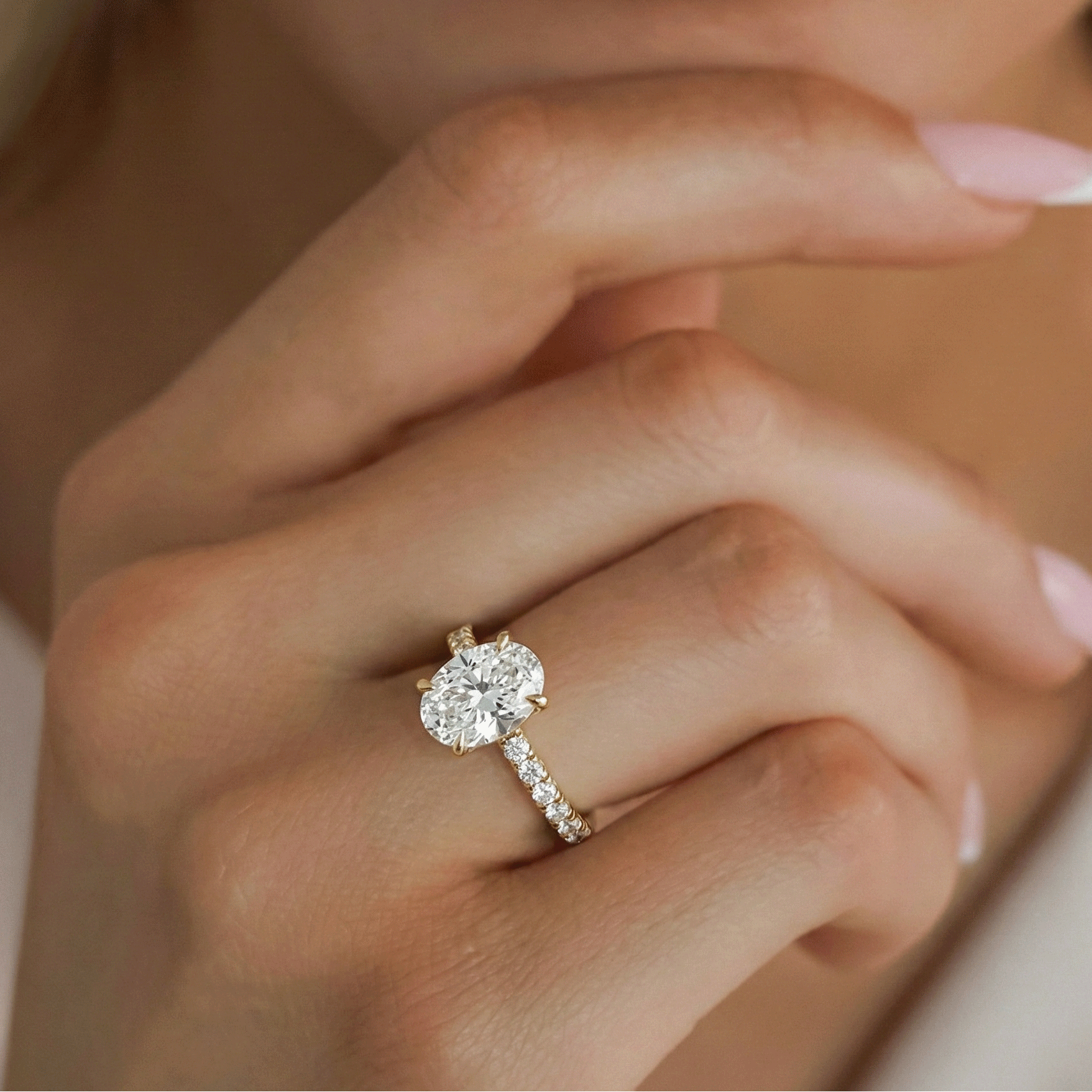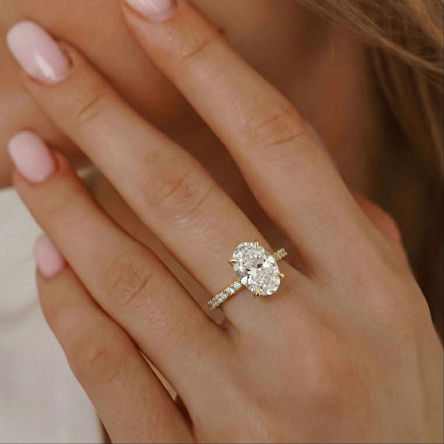 At the heart of this ring lies a breathtaking 2.50 CT Oval-shaped lab-grown diamond, ethically grown for exceptional brilliance and purity. The IGI-certified center stone is available in elite grades including D/VVS2, EF/VVS1, EF/VS1, and G/VS1, offering a flawless, inclusion-free sparkle.